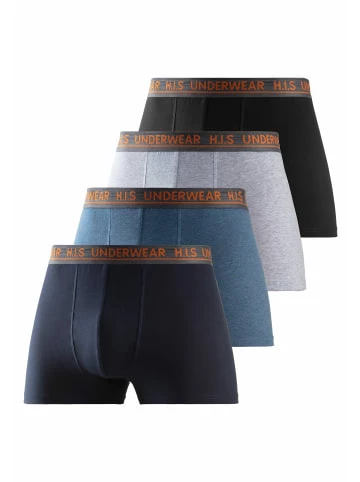 H.I.S Herren Boxer im 4er Pack. Mit meliertem Logo Webbund. Obermaterial: 95% Baumwolle, 5% Elasthan – H.I.S Herren Boxer im 4er Pack – Mit meliertem Logo Webbund – Single Jersey Qualität – Aus elastischer Baumwolle