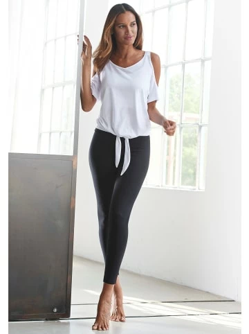 Shirt von H.I.S mit rundem Ausschnitt und Cut-outs an den Schultern. Vorn mit zwei Bändern zum Knoten. Länge ca. 62 cm. Weicher Baumwoll-Modal-Mix. – Runder Halsausschnitt – Halblange Ärmel mit Cold-Shoulder-Detail – Vorne Bänder zum Knoten – Figurumspielende Passfom – Aus weicher Jerseyqualität