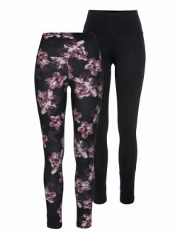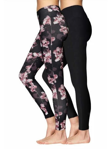 Leggings im Doppelpack von H.I.S. Breiter, elastischer Bund. Aus 94% Baumwolle, 6% Elasthan. – Leggings Doppelpack – 1x mit Druck und 1x einfarbig – Breiter, elastischer Bund – Feine, weiche Qualität mit hohem Baumwollanteil