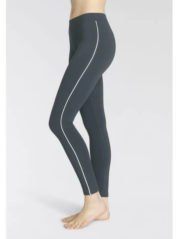 Sportive Leggings von H.I.S. Mit dezenter Logostickerei. Seitliche Paspelierung in Kontrastfarbe. Elastischer Bund. Basic für Freizeit und Sport. Aus weichem Material in Jerseyqualität. – Weiche Baumwollleggings – Mit elastischem Bund – Kontrastierende Paspel – Aus elastischer Baumwoll-Jersey-Qualität