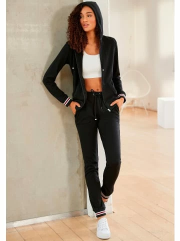Joggpants von H.I.S, elastisches Bündchen ist mit einem Kordelzug, Eingrifftaschen, Paspeltaschen zieren die Rückseite, elastische Rippbündchen am Beinabschluss in Ringeloptik. – Bequeme Jogginghose – Bündchen mit Kordelzug – Eingrifftaschen – Geringelte Rippbündchen am Saum