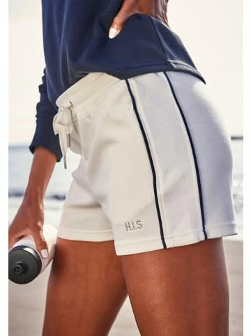 Shorts von H.I.S. Seitliche Streifen entlang der Beine. Praktische Eingrifftaschen. Kordelzug zum regulieren der Weite. Aus 60% Baumwolle , 40% Polyester. – Shorts mit Kontrastfarbenem Piping – Praktische Taschen – Logostickerei am Bein – Weiche Interlock Qualität