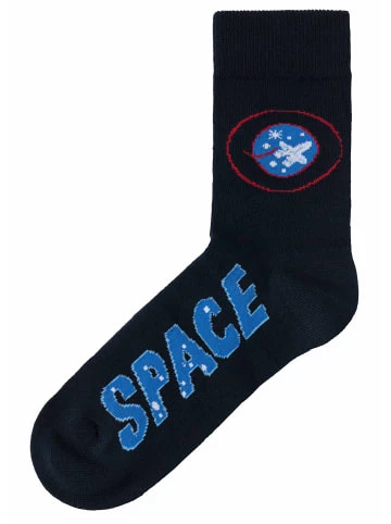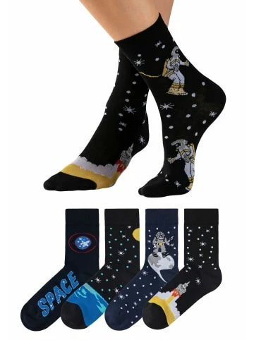 HIS Socken für Weltraum und Astronautenfans im 4er Pack. – Gemusterte Socken mit Astronauten und Weltraum Motiven – Nicht nur für Weltraum Fans – Hautfreundliche Baumwolle – Mit flacher Spitzennaht – Verstärkte Ferse und Spitze