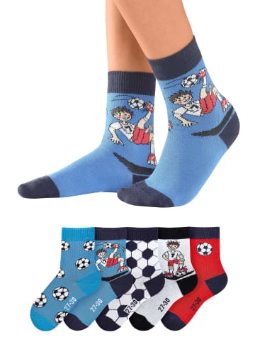 Jetzt bestellen für kleine Fußballfans einfach nach Lust und Laune kombinieren. Kindersocken für Fußballfans mit schönen Fußball Motiven in unterschiedlichen Farben. Mit diesen hochwertigen Marken-Socken von H.I.S wird jeder Tag für Klein und Groß zum Vergnügen. Das anschmiegsame, atmungsaktive und hautfreundliche Material, mit hohem Baumwollanteil sorgt für ein angenehmes Fußklima. Dank dem speziellem Bündchen, werden Druckstellen auch nach mehreren Stunden vermieden. Die verstärkten Belastungszonen an Spitze und Ferse sorgen für optimale Haltbarkeit. HIS Kindersocken in der praktischen 5er Packung. Die Motive bleiben auch nach mehreren Wäschen erhalten. Trageangenehme Baumwoll-Qualität für ein angenehmes Tragegefühl aus 75% Baumwolle, 23% Polyamid, 2% ELasthan. ? 5x verschiedene Designmotive. ? Beständige Qualität auch nach mehreren Wäschen. ? Mit eingestrickter Größe unter der Sohle. ? Hoher Baumwollanteil. – 5x verschiedene Design Motive – Beständige Qualität auch nach mehreren Wäschen – Mit eingestrickter Größe unter der Sohle – Hoher Baumwollanteil