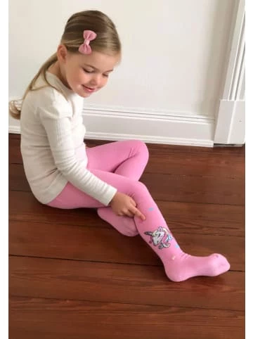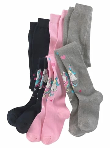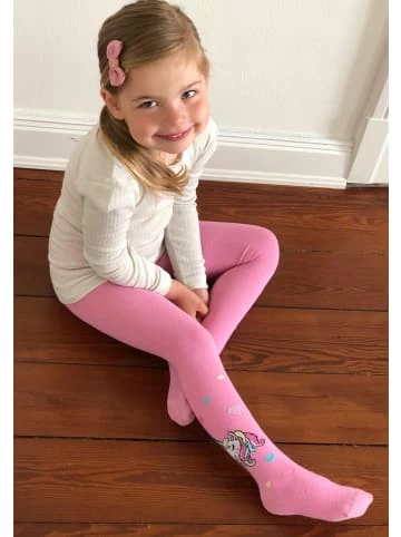 Obermaterial: 76% Baumwolle (Bio-Baumwolle), 23% Polyamid, 1% Elasthan – Weiche Kinderstrumpfhose im 3er-Pack – Mit magischen Fantasy Einhorn Motiven – In drei unterschiedlichen Farben – Weiche Bio-Baumwollmischung