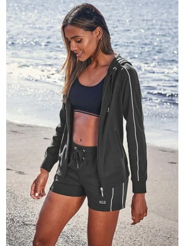 H.I.S sportlich Kapuzenjacke. Piping entlang der Arme. Praktische Eingrifftaschen. Aus 60% Baumwolle , 40% Polyester. – Sportliche Sweatjacke mit Kapuze – Durchgehender Reißverschluss mit Metallzipper – Raglanärmel mit Piping – Praktische seitliche Eingrifftaschen