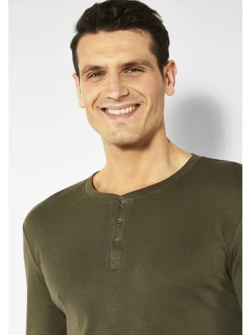 Langarmshirt von H.I.S. Unifarben. Henley-Ausschnitt. Trageangenehme Feinrippqualität. – H.I.S Langarmshirt – Feinripp-Qualität – Rundhalsausschnitt mit Knopfleiste – Aus reiner Baumwolle