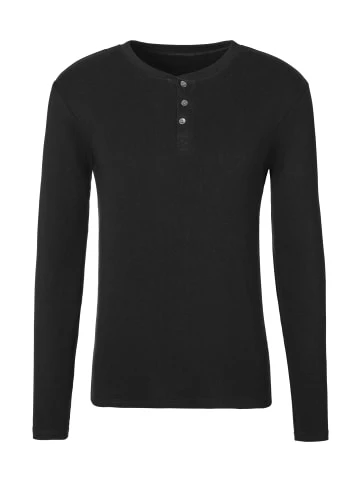 Langarmshirt von H.I.S. Unifarben. Henley-Ausschnitt. Trageangenehme Feinrippqualität. – H.I.S Langarmshirt – Feinripp-Qualität – Rundhalsausschnitt mit Knopfleiste – Aus reiner Baumwolle
