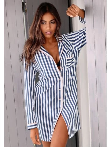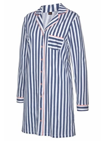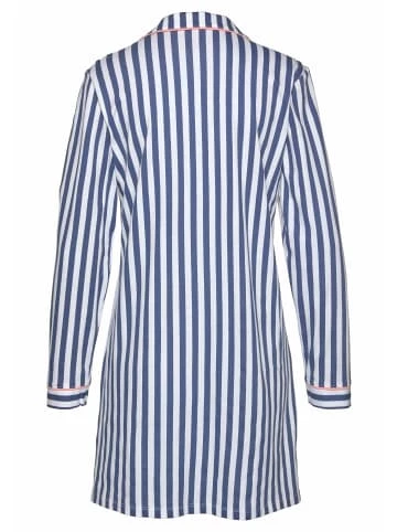 Klassisches H.I.S. Shorty im Streifenmuster. Mit klassischem Reverskragen und aufgesetzter Brusttasche. Kontrastpaspel an Manschetten, Brusttasche und vorderer Kante. Obermaterial: 100% Baumwolle (unterstützt Cotton made in Africa) – Nachthemd im klassischen Design – Kontrastfarben abgesetzte Einfassungen – Mit langen Ärmeln und Brusttasche – Schlitze an den Seiten – Trageangenehme Baumwollqualität