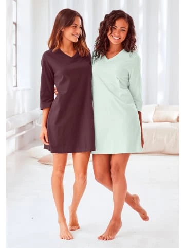 Nachthemden im Doppelpack aus 100% Baumwolle. Mit jedem Kauf eines Artikels aus Cotton made in Africa untestützt Du die Initiative – Nachthemd von HIS im Doppelpack – Mit 3/4-Ärmeln und V-Ausschnitt – Kurze Länge – Weiche Single Jersey-Qualität aus reiner Baumwolle